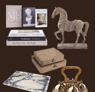 Check out my Amazon mood board for a curated collection of coffee table books and unique decorative items to mix and match.